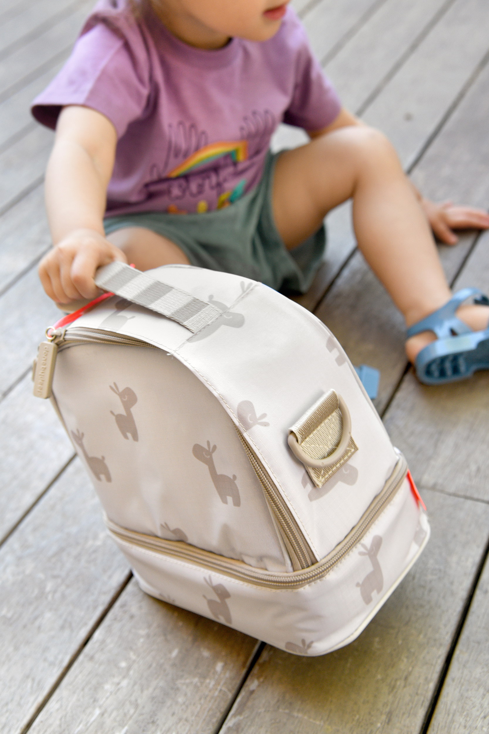Sac isotherme enfant Done by Deer Lalee sable avec motif lama et bandoulière réglable.